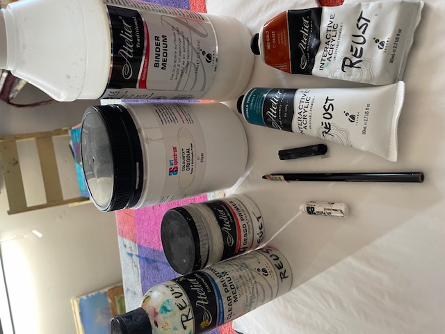 large gessoed canvas, preferably at least 24 by 30 inches but hopefully larger. This is a good opportunity to reuse an older canvas – if you use an old canvas, cover it in white gesso before the workshop.