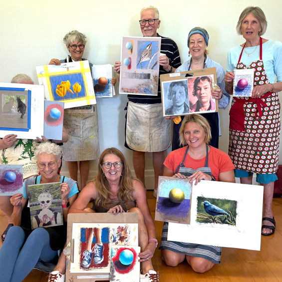 Day 1 was a deep dive into one powerful idea, i.e., that, if the value is right, the colour will work. Starting with simple black and white Notan designs, participants learned to strip images back to their essentials, to see structure before detail. Through a series of guided exercises, participants explored how value – not colour – is the key to making a work believable. Using tools such as value charts, squinting, and digital apps’, participants were able to train their eyes to recognise tonal relationships more accurately. This foundation was then carried into colour, where the focus shifted to selecting pastel sticks by value first and colour second – a concept that proved both challenging and transformative, and led to some genuine breakthroughs. In the afternoon, participants applied these principles to their own work, either building colour over a tonal under-drawing or working directly from reference and still life. Emphasis remained on simplifying, grouping values, and resisting the urge to overwork.